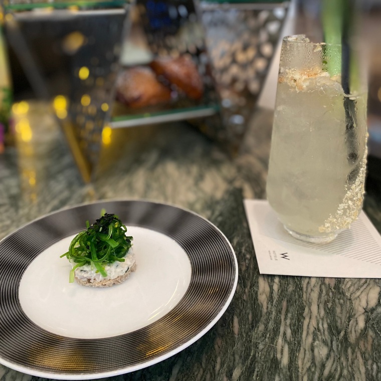 Beginning with a refreshing clarified pina colada cocktail made with Milton Silver Rum and garnished with gold dust and coconut shavings. This drink is a fun and delicious accompaniment to the savoury selection on offer, with five options to tickle your palette, each offering unique flavours and interesting ingredients.