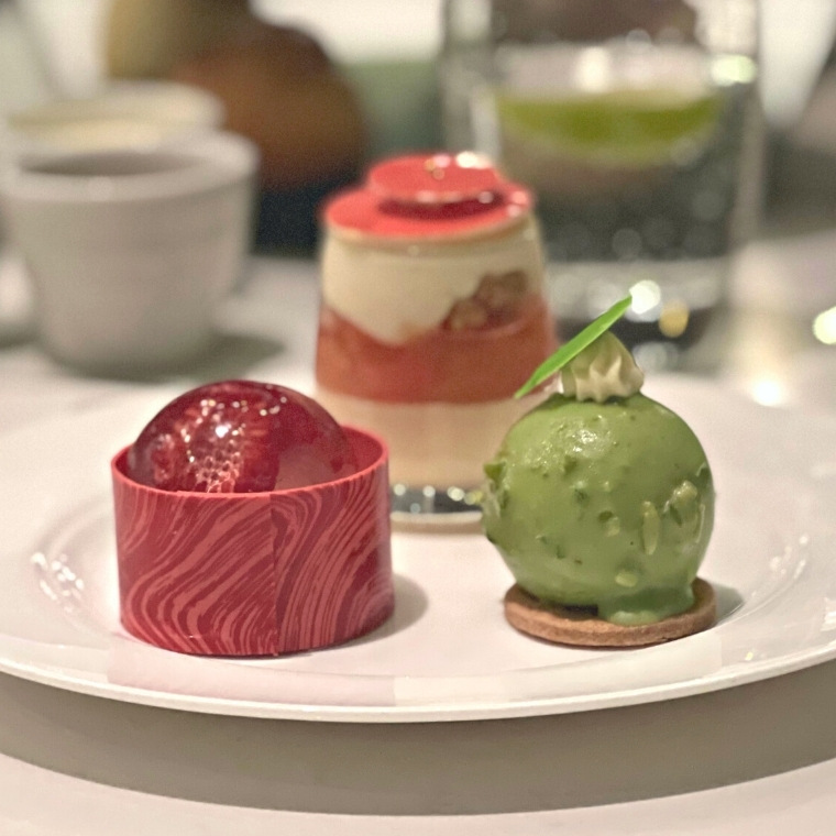The raspberry lychee jelly tartlet, encircled with a thin case of white chocolate, is very refreshing and provides a great palate cleanser, while the verrine is an explosion of citrus.