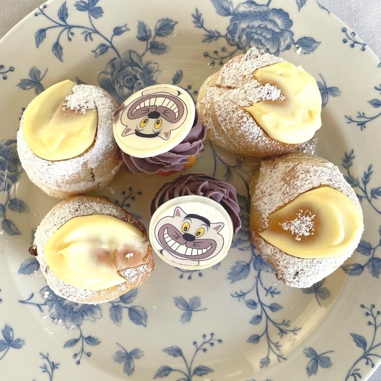 The combination of Carrot scones with cream cheese worked. They were fresh and fluffy with fresh cream and jam. The children sitting with us enjoyed the March Hare’s scones too. The Mad Hatter’s Tea Party theme continued with The Queen of Hearts Jam Tarts. They were very fresh and delicious.