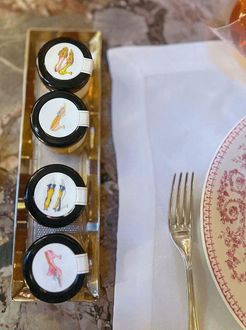 A charming surprise awaits just beyond the tea room, through to the hotel foyer, where guests can view a display of Manolo Blahnik shoes, further linking this experience with the world of couture.