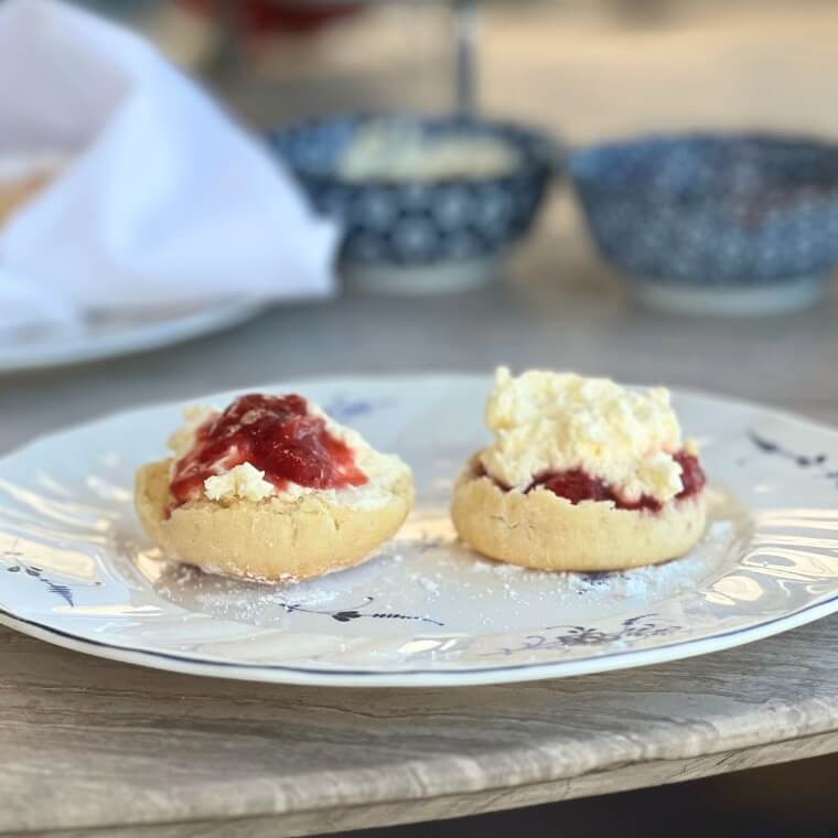 Homemade scones with vanilla clotted cream and strawberry compote
