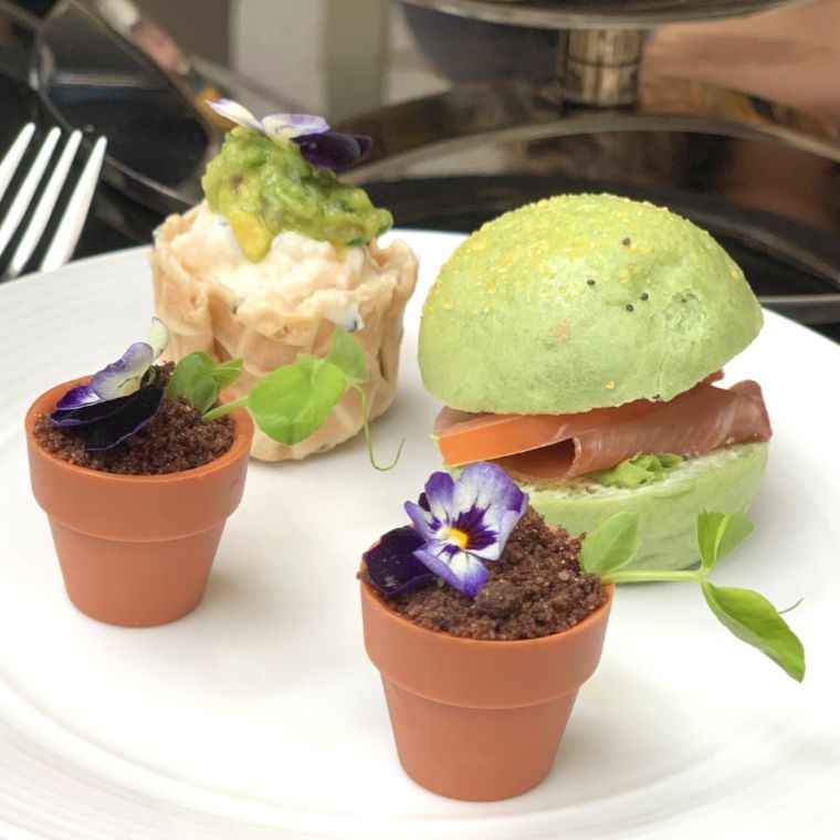 We were halfway through the sweets tier before I could bear to cut through the cutest dessert I had ever seen at an afternoon tea, the Yuzu Viola Flowerpot. How could anyone eat something so intricate and adorable? Well to answer that, me and everyone else who dines at the Fullerton this month! A lovely tangy citrus based sweet paired with a chocolate soil – if it wasn’t so delicious I would have taken one home and preserved it on my bookshelf!