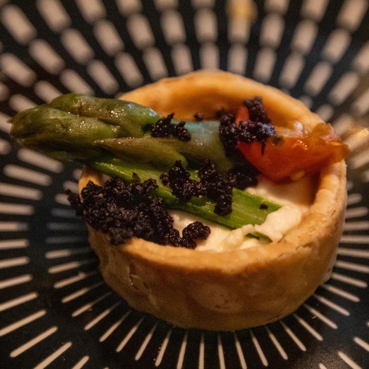 There were so many hits on both savoury menus so it’s actually quite hard to shortlist our favourites. If we had to pick a winner on the regular menu it would be the Garden Patch. A bright, light chilled pea puree in a beetroot waffle cone tart shell topped with thin shavings of carrot and micro herbs. It’s a very spring inspired dish. Kudos on the plant-based menu goes to the Crumpetz. If all gluten free crumpets had the same taste and texture as these bite-sized morsels, we’d happily make the swap.