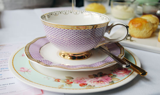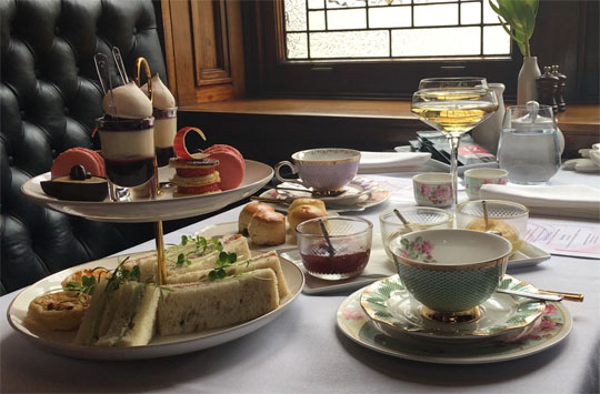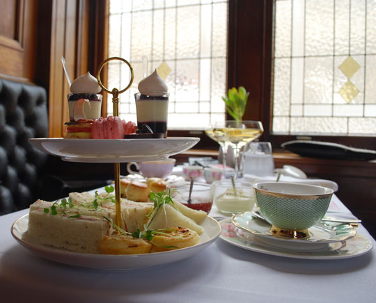 As the light shines through the stain glass windows onto the white linen, traditional leather booths, red velvet chairs and scattered elements of gold embellishments, you then see glimpses of contemporary touches with Robert Gordon tea ware, glassware and T2 tea.