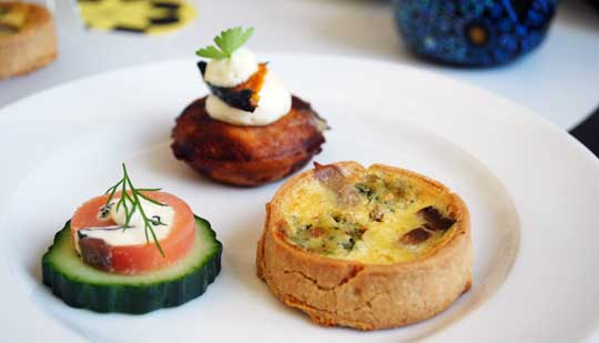 I particularly enjoyed the vegetarian sushi hand rolled by QT’s sushi master from the hotel’s Japanese restaurant Yamagen, the house-made quiche and salmon roulade, as well as the fancy scone complete with cupcake trimmings and a waffle cone.