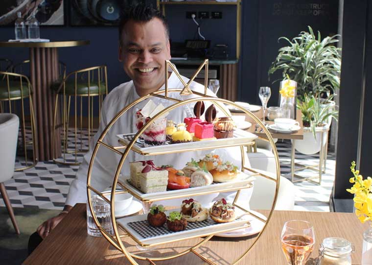 Director of Culinary, Deepak Mishra has created a stunning selection of savoury and sweet morsels presented on a custom gold stand that arrives in spectacular fashion.