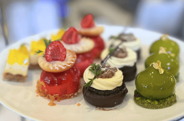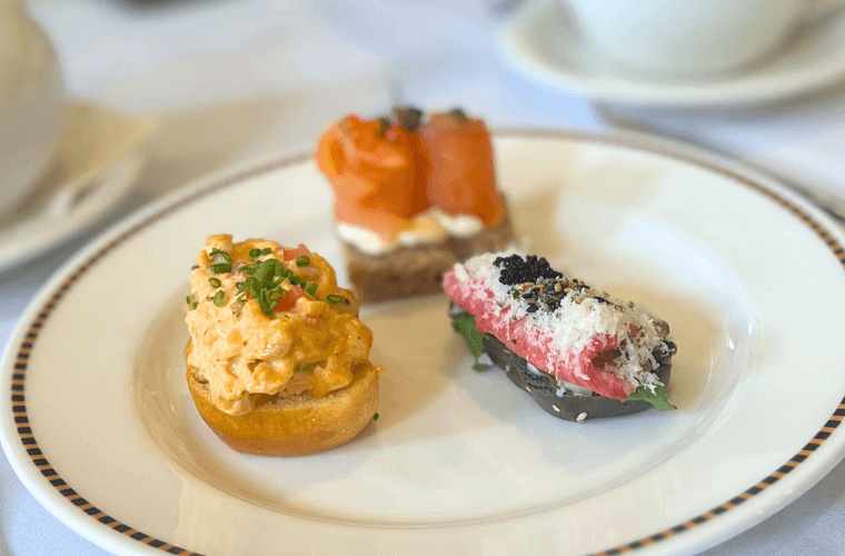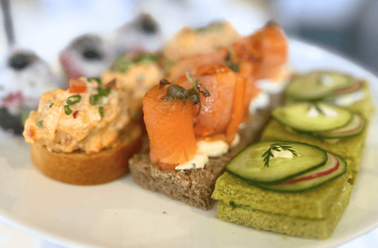 Then the three-tiered tower of tasty treats came out, and the presentation of each sweet and savoury was second to none. Bonus points for the inclusion of mini tongs for serving. I started on the middle savoury tier with the sous vide grain-fed beef tenderloin on a toasted brioche before moving onto the mildly spicy chipotle chicken & truffle bruschetta. The traditional Danish smørrebrød was rye bread topped with cream cheese and lashings of smoked salmon, yum! While the cucumber and radish carpaccio was an alternate take on the traditional cucumber sandwich and a refreshing end to the savouries.