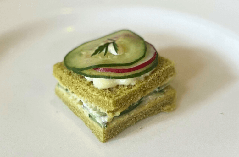 - Cucumber Slice, White Radish, Spinach Milk Bread, Aioli