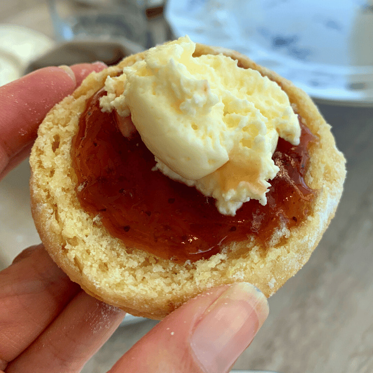 - Homemade vanilla scones, vanilla clotted cream, trepang Kakadu plum jam