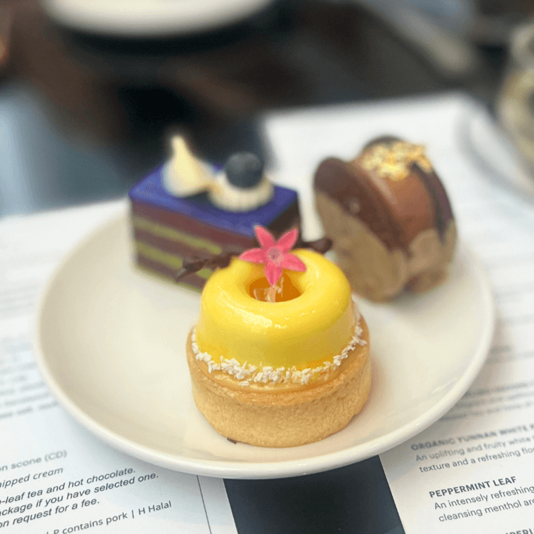 To complement the high tea experience, I chose the Vintage Imperial Puerh, a deeply aromatic and complex tea with notes of fragrant incense woods, dried plum, and a lingering chocolate aftertaste. This rich tea beautifully enhanced the flavours of the seasonal treats. Jing, renowned for its dedication to sourcing the finest single-origin teas, brings a world of exceptional flavours to the menu. Among its exquisite offerings, the refreshing Lychee Iced Black Tea, the bold and fruity Blackcurrant & Hibiscus, the delicately fragrant Jasmine Pearls, and the refined Organic Yunnan White Peony each offer a unique sensory experience.